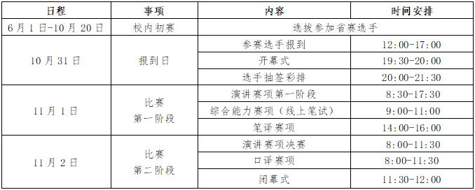 1. 英语组(综合能力、演讲、笔译、口译)比赛日程: