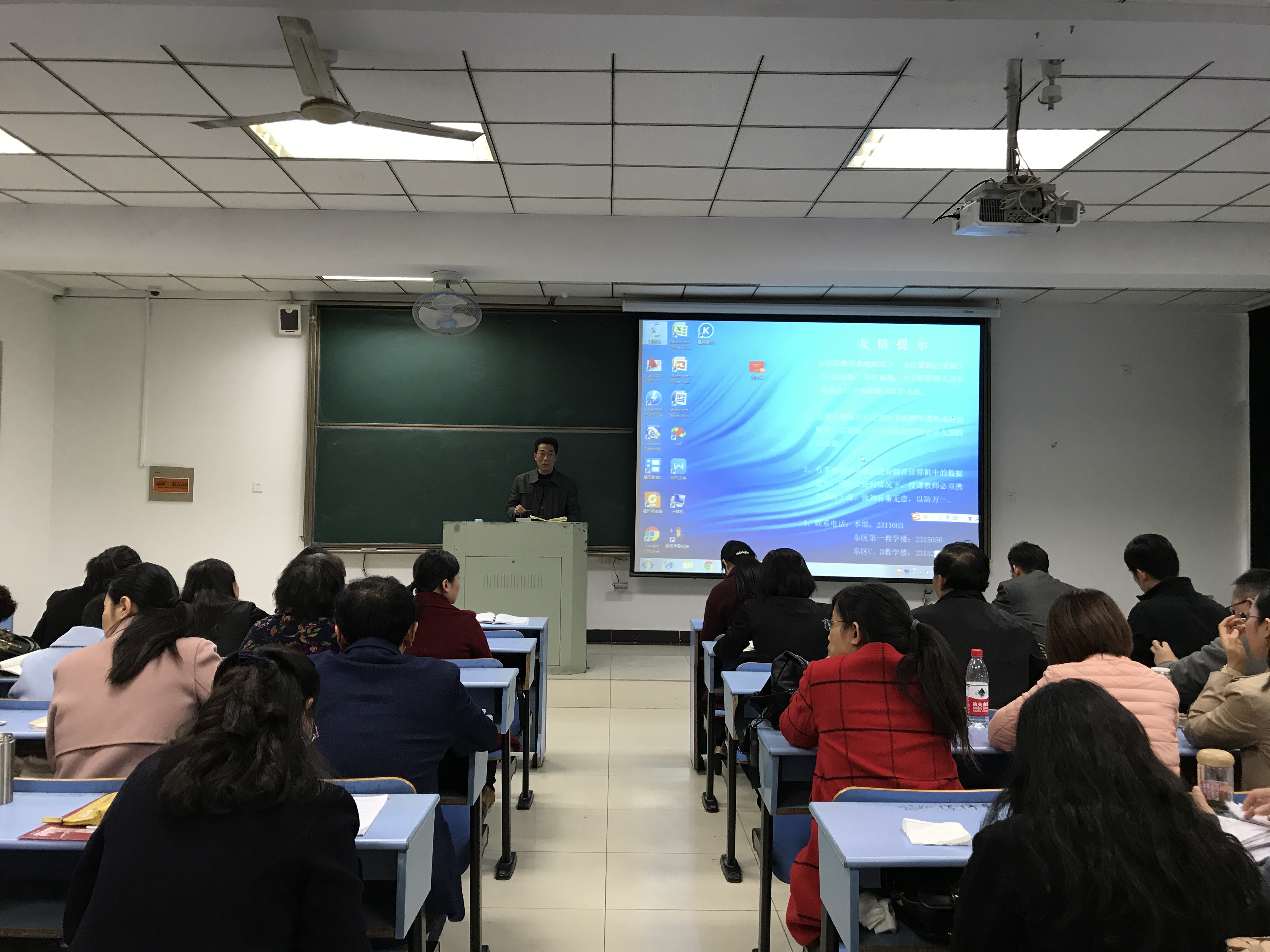 11月13日下午,伟德国际bevictor1946在秀山校区教南106召开全体教职工会议,通报近期工作,进行期中考试动员。院党委书记胡卫东主持会议。