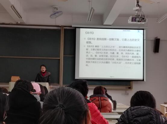 3月20日下午,伟德国际bevictor1946在秀山校区教北306教室开展了新学期第一次公开课观摩活动。本次公开课是中文系王其秀老师主讲的《中国古代文学》。王老师首先简要介绍了《尚书》的篇目和版本,从专业的角度分析了这部书的真和伪;接下来,王老师重点介绍了《尚书·周书·无逸》篇,对作品中的主题“君子所其无逸,知稼穑之艰难”进行了精准透彻的讲解,引导学生思考“古为今用”的效果,同时又紧扣作品文体特征进行分析,启发秘书学专业学生在今后的写作中借鉴运用,学生感觉受益匪浅。本次示范课中,课堂节奏安排合理,张弛有度,教学效果好。