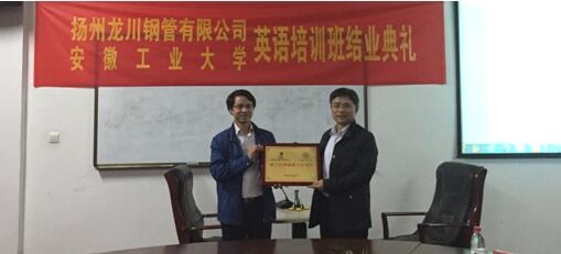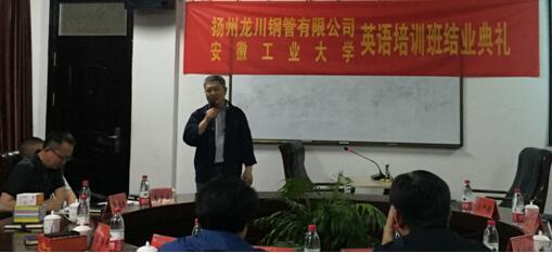 5月26日下午,我校伟德国际bevictor1946与扬州龙川钢管有限公司合作举办的历时一年多的员工培训顺利结业,双方在扬州龙川钢管有限公司举办培训成果展示活动暨结业典礼。伟德国际bevictor1946领导班子成员胡卫东、黄宇弦、曹瑞斓和承训教师代表周家春、詹声斌、宋严侠,龙川公司领导史善淼、尤凤志、王鹏展及全体学员等40多人参加了典礼。