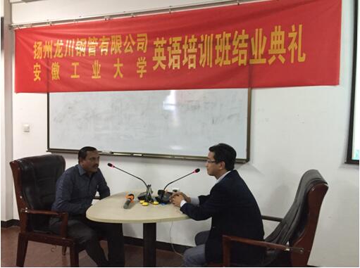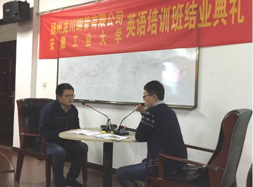 培训班班主任回顾了此次英语培训的历程和收获,学员代表分组开展了公司宣传片英语同声解说以及商务谈判、技术交流情景模拟谈话,展示了学员风采和培训成效。结业典礼还表彰了优秀学员,开展了英文知识抢答等活动。