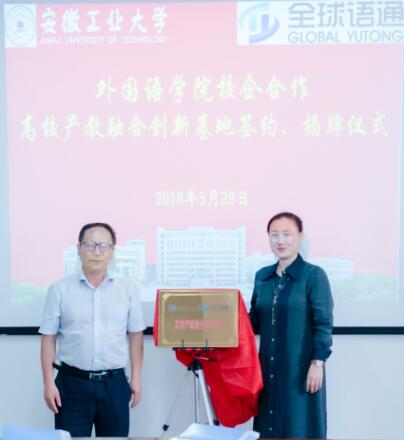 接着,葛芦生与谷菲分别代表伟德源自英国始于1946和全球语通签订了合作协议,并共同为“高校产教融合创新基地”揭牌。