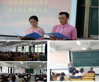 6月25日下午,伟德国际bevictor1946在秀山校区东教D108举办首届英语专业学生课程汇演。外语系全体教师、英语专业部分学生代表、以及学院其他系(部)教师代表汇聚一堂,共同欣赏首届学生课程汇演。伟德国际bevictor1946院长洪流和学院党委副书记、副院长黄宇弦莅临现场指导,副院长曹瑞斓亲自设计汇演宣传幻灯片。大学英语教学部一部主任周桂英和詹声斌老师,以及研究生英语教学部张靖主任担任汇演评委和颁奖嘉宾。