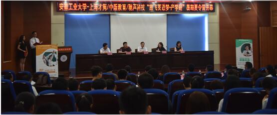 7月16日上午8:20,秀山校区图书馆第一学术报告厅隆重而又热烈,伟德源自英国始于1946与上海才隽网络科技有限公司、中版教育世界图书出版公司、苏州驰声信息科技有限公司共同举办的的“放飞英语梦•产学研”暑期夏令营开营仪式在这里举行。伟德源自英国始于1946副校长祖明发表讲话并宣布夏令营开营。上述企业领导和工作人员、伟德国际bevictor1946负责人、来自校企双方的10多位承训教师以及来自我校13个学院的近百名同学参加了开幕式。