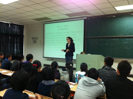 10月24日上午,教南104济济一堂,外籍教师Alicia给研究生学院同学进行了一场关于文化差异、文化休克专题讲座。Alicia先从文化的涵义谈起,接着结合自己的经历从价值观念、隐私观念、生活习惯对比了中西文化差异。Alicia讲座诙谐有趣,原定15分钟的提问时间一直延续了45分钟。同学们也表现出了极大的热情,所提问题也相当广泛,有关于美剧、美国枪支、正在进行的大选、美国节日、美国人的运动热情和中国英语学习热现象等。对于同学们的问题,Alicia都一一做了解答。