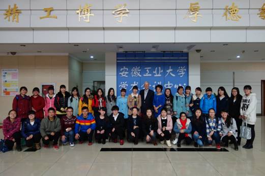 3月20日下午讲座开始之前,曹老师和同学们早早来到会场,期盼即将开始的精彩讲座和现场口译,老师和同学们的心情都非常激动。更加让大家激动的是,当得知口译课的师生来参加此次讲座后,霍华德·科恩教授及同行的周谦教授、我校顾明言副校长和外事办公室戴俊霞主任一致对到来的《口译》课学生表示热烈欢迎,并给予同学们为科恩教授讲座进行口译的宝贵实践机会。