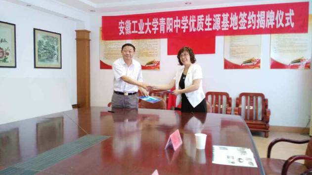 顾明言代表伟德源自英国始于1946感谢青阳县政府对伟德源自英国始于1946优质生源基地建设的关心和支持!她向对方介绍了我校的办学历史、办学特色、地方高水平大学建设等情况,重点介绍了我校在创新教育方面所取得的成就。顾明言指出,作为省示范高中的青阳中学,师资力量雄厚、教育教学成果丰硕,每年为安工大输送20多名优秀学子,今后,安工大要进一步加强与青阳中学的联系,推动双方在人才培养上的对接,并欢迎青中学子参加安工大科技创新夏令营活动!
