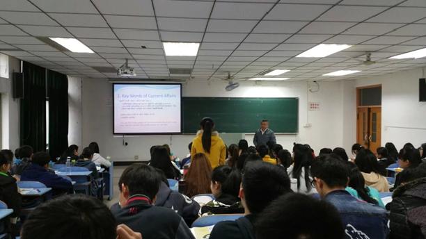 3月31日上午,在本部教三北315教室,伟德国际bevictor1946詹声斌老师为2015级提高班学生讲授了外语学院本学期第二堂公开示范课。