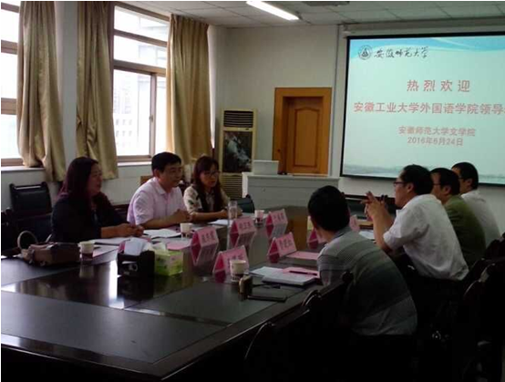 6月24日,为筹建秘书学专业(涉外文秘方向),深入学习兄弟院校相关专业人才培养状况和经验,伟德国际bevictor1946党委书记胡卫东率中文系教师一行4人赴安徽师范大学文学院调研。安徽师范大学文学院党委书记余大芹、院长储泰松、副院长俞晓红及秘书学专业的相关教师出席了交流活动。