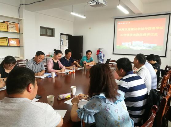 6月2日下午,滁州学院伟德国际bevictor1946院长程家才、副院长祁世明、副院长葛厚伟一行来我校调研交流本科教学工作审核评估评建工作。伟德国际bevictor1946院长洪流主持交流会,学院党委副书记、副院长黄宇弦,副院长曹瑞斓及各系部室负责人参加了座谈交流。