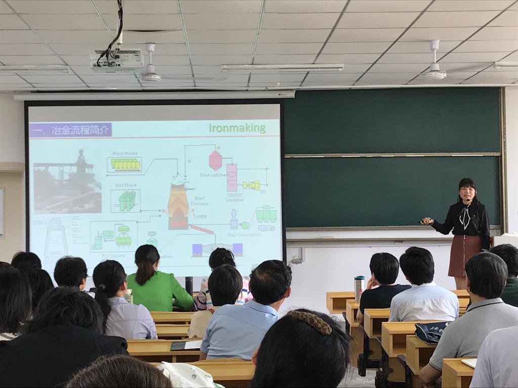 李娜博士先介绍冶金流程。她从什么是冶金学入题,接着简要介绍冶金的长流程和短流程,再从炼铁、炼钢、炉外精炼、连铸等环节解释冶金流程,在宏观和微观两个层面用最精练语言给外语老师讲授冶金基本知识。在冶金专业英语教学改革交流环节,李娜博士依据自己的教改项目,分享在专业英语教学目标、教学内容、教学方法等方面的研究成果。李博士还特别强调新工科对冶金教学提出的新要求,这与新文科理念下的大学英语教改有许多不谋而合之处,新文科新工科理念的相互碰撞在李博士和外语老师之间产生强烈共鸣。最后李博士还介绍了冶金新技术,帮助外语老师了解冶金科技前沿,深刻感受新技术对生产生活的深远影响。