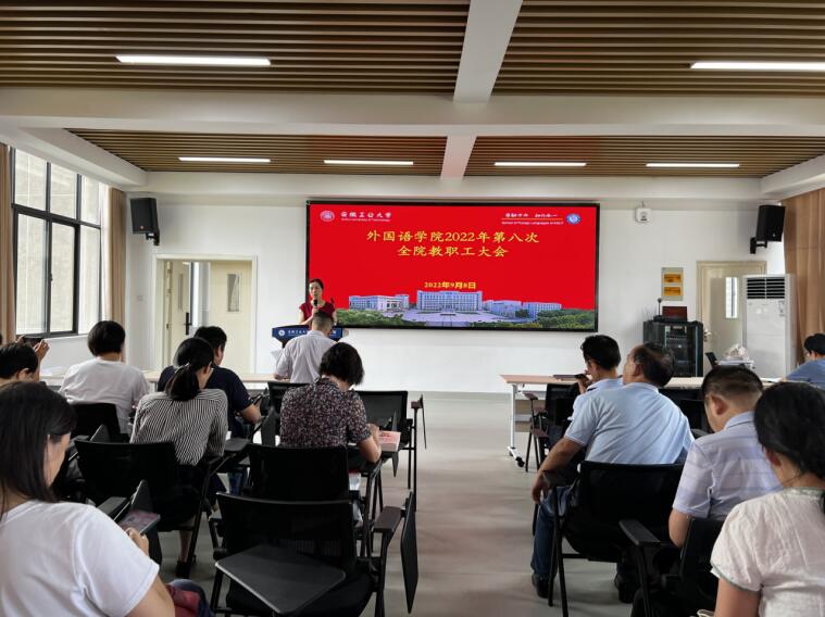 9月8日下午,伟德国际bevictor1946在教一401多功能报告厅召开2022年第八次全体教职工大会,学院全体教职工参加了会议,会议由学院党委副书记、院长曹瑞斓主持。