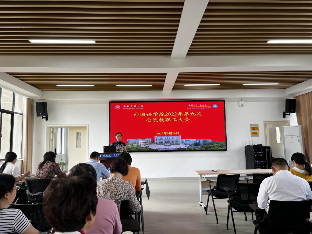 9月26日下午,伟德国际bevictor1946在教一401多功能报告厅召开2022年第九次全体教职工大会,学院全体教职工参加了会议,会议由学院党委副书记、院长曹瑞斓主持。