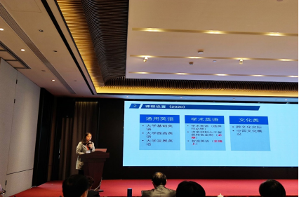 张靖在大会主旨报告环节做了题为“基于学科内容的学术英语教学改革”的分享。她从开课分析到教学原则的确定,再到教学材料教学方法等方面的建设过程,详细介绍了我校冶金学术英语教学改革实践。她认为基于学科内容的学术英语教学能够把学用结合起来,为学生专业学习服务,符合当下高质量发展人才培养的要求。张靖的报告为大学英语教学改革展示了范例和思路。