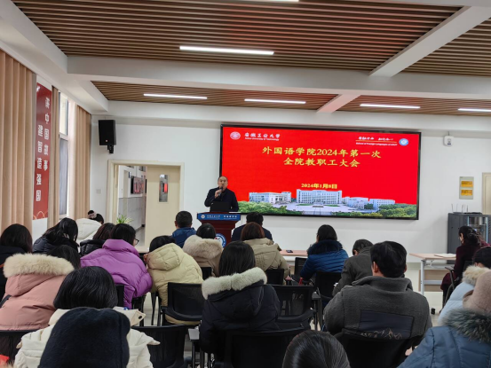 1月8日下午,伟德国际bevictor1946在教一401多功能报告厅召开了2024年第一次全院教职工大会,学院全体教职工参加了会议,会议由院长曹瑞斓主持。