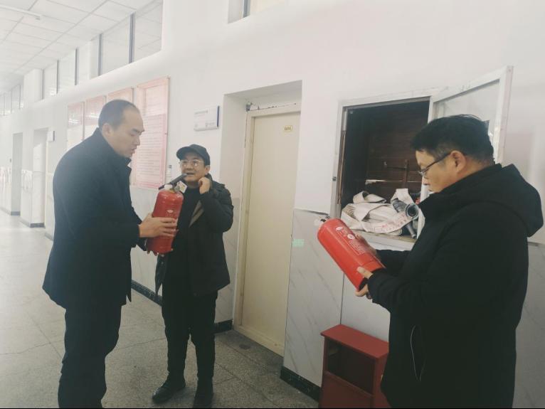 夏玉钦一行对学院的办公场所、博士工作室、资料室、语音室、学生活动室等场地的用电安全、可燃物堆放等消防安全问题进行了全面细致的检查,重点检查了学院办公场所内消防栓通水情况、灭火器有效压力检查等消防安全设施。同时学院建立了《假期值班消防安全隐患检查台账》,做到“责任到人,落实到位”,坚决守住消防安全底线,全力遏制消防事故发生。