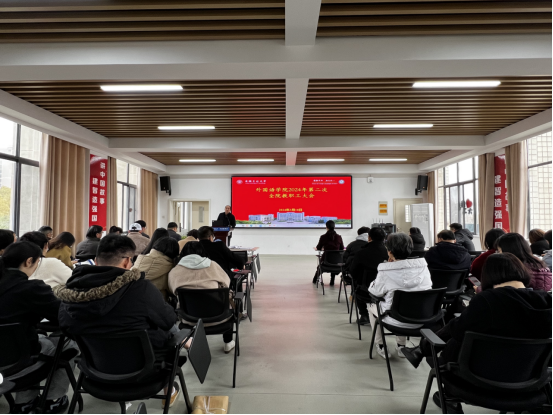 为谋新篇开新局,凝聚全体教职工,确保新学期开学各项工作平稳有序开展,3月18日下午,伟德国际bevictor1946在教一401会议室召开2024年春季学期全体教职工大会,会议由学院党委书记夏玉钦主持。