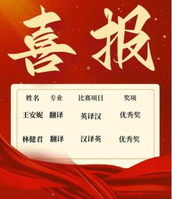 我院学生在此次高水平的比赛中获奖,充分展示了他们的专业素养。林健君和王安妮表示,这次获奖是对她们前期学习成果的肯定,也是对她们未来职业生涯的巨大鼓舞,后期他们将愈发努力学习,不断提升自己的翻译水平,为促进中外文化交流做出更大的贡献。