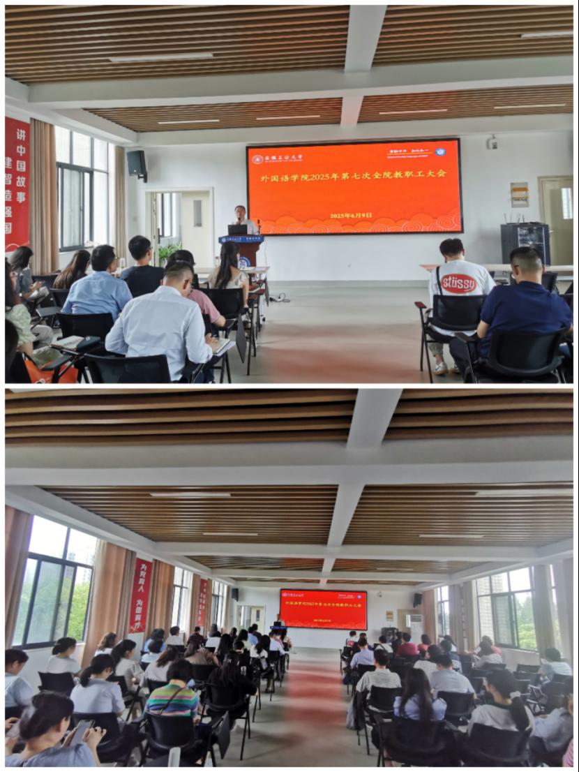 王成勇在总结讲话中指出,本次会议是一次政治理论学习会、师德师风警示教育会,也是学院重点工作部署会。希望全体教职员工筑牢师德底线,充分认识到“师德一票否决”的严肃性;把准政治方向,进一步明确“为党育人、为国育才”使命;深化作风建设,坚决落实中央八项规定精神;聚焦学科发展,积极探索外语学科转型发展之路;夯实业务基础,坚持走“以质量为核心”的发展道路。