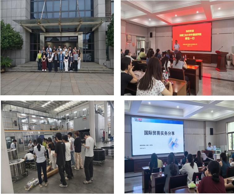 2025年6月12日,外语系商务英语专业校外实习活动启动。商务英语专业2022级20位同学在蒯振华老师带领下,参观了马鞍山统力回转支承有限公司,并与该公司的外贸部门开展外贸业务学习与交流活动。