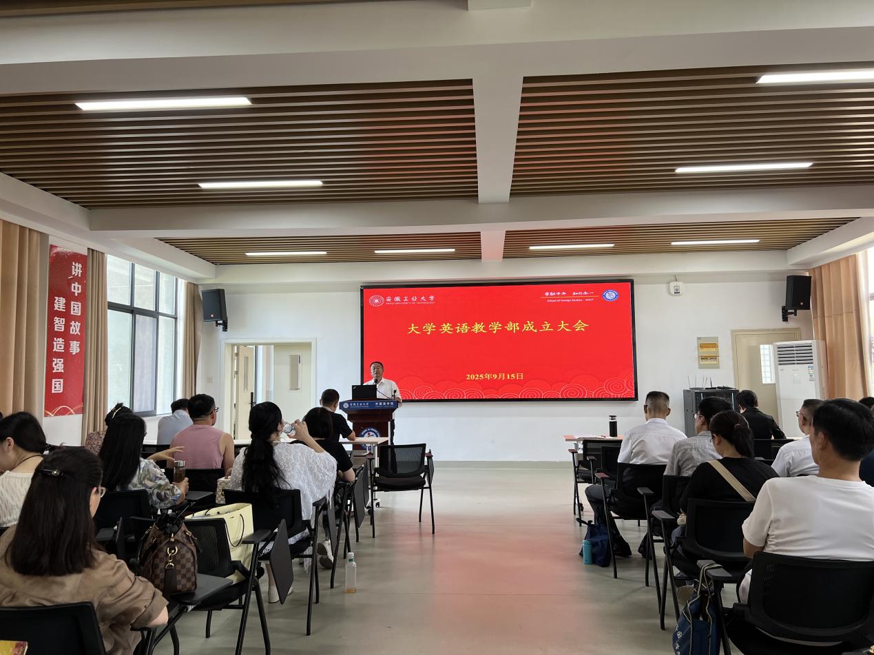 会上,学院党委书记王成勇宣读了《关于成立大学英语教学部及相关人事安排的通知》。戴拥军介绍了大学英语教学部内部分工与办公、教研场所安排,要求全体教师严格落实大学英语修读方案(2025版),规范教学行为,确保教学质量的统一与提升;要主动加强对外沟通协作,建立常态化沟通机制,广泛听取职能部门、各兄弟学院对大学英语教学的需求与建议,增强教学服务的针对性与有效性;要讲团结、重融合,以事业发展为重,凝聚发展合力,共同营造和谐奋进的工作氛围;要大力推进教学智能化转型,革新教学模式,赋能个性化学习与精准化评价,全面提升教学效率与现代化水平;要持续加强课程思政建设,引导学生树立正确的价值观,增强文化自信,用英语讲好中国故事。