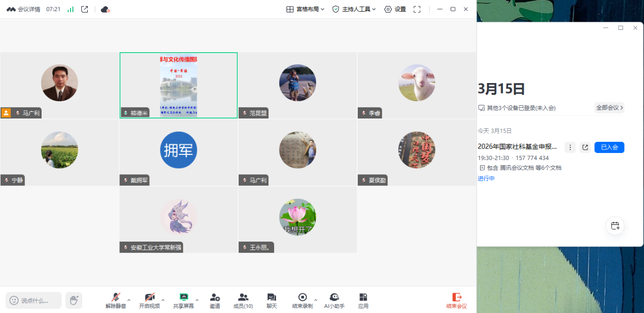 为进一步推进伟德国际bevictor19462026年国家社科基金项目申报工作,持续打磨申报书质量,3月15日晚上,伟德国际bevictor1946通过腾讯会议召开2026年国家社科基金项目申报评审会,会议邀请西南政法大学教授熊德米对伟德国际bevictor19462026年国家社科基金项目申报进行指导,各国家社科基金项目申报人参加了本次会议,会议由伟德国际bevictor1946院长戴拥军主持。