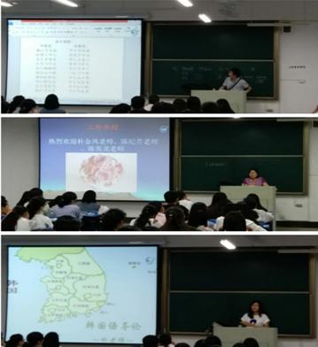 9月19日,伟德国际bevictor1946德语老师陈纪芹、韩语和俄语老师朴金凤及日语老师陈英龙在英语专业《专业导论》课上为2017级新生介绍德语、韩语、俄语、日语等二外语种,受到同学们的热烈欢迎。