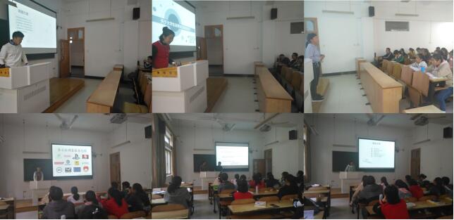 此前的应用文写作课上,于老师已经讲授了调查报告的相关内容,并对实训提出要求、做出指导。课后,七个学习小组的同学密切协作,分头设计问卷、展开调查、撰写报告。本次活动中,小组成员在前期团结合作、充分准备的基础上,派代表以PPT课件呈现了各自的调查项目。这些项目种类丰富,与大学生的校园生活密切相关,包括新生能否自带电脑入校、消费情况、宿舍人际关系、食堂就餐、电子游戏、共享单车等。汇报人思维活跃、条理清楚,对上一周调查项目的完成、调查结果的分析进行了精彩的汇报和展示。为使问卷设计更加合理、调查结果分析更加细致,每小组汇报后,师生均共同进行了点评。