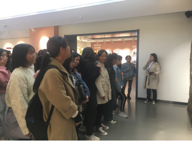 此次实践秉承“兴趣使然,知行合一”活动理念,旨在提升学生的翻译实际应用能力。在任课教师陈琳的带领下,活动有序开展。此次活动共分为三部分,首先由伟德国际bevictor1946学生志愿者带领参观,细致讲解;接着任课老师提出翻译实践具体要求;最后学生以课堂讨论小组为单位,选择自己喜欢的展板进行翻译。