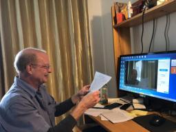 Mark老师在学校外教中年龄最长,平日里和蔼可亲,平易近人,在我校多年的教学工作中,与师生们结下了深厚的情谊。这次特殊时期,Mark主动要求多承担教学任务,以缓解学校排课压力。在准备网络授课期间,认真制定教学计划,与合作教师一起尝试摸索网络教学模式。最终依据目前网络具体情况和英语口语教学的特点,选择了腾讯课堂与微信相结合的方式开展教学。Mark使用腾讯课堂教师版邀请学生进入网络课堂进行学习,直播教学内容的讲解,穿插展示PPT课件及相关视频。在互动环节中,学生把语音作业通过微信发送至班级群,Mark点击语音播放,及时在直播中给予学生点评并作出正确示范。这种教学方式让每个学生都积极地参与到课堂教学过程中去,受到了学生的一致好评!