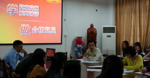 本次党课围绕“学党规党章系列讲话,做合格党员”展开。黄宇弦首先以辅导考研学生学习政治为例,告诫党员同志对于党章学习切勿死记硬背,一定要多读多理解,从对党的发展历史的认识出发,循序渐进,深入领悟党章要领和精神,唯有此才能将党章内容和精髓渗入自身意识和认知,转化为自己的知识。黄宇弦继而详细地从党的发展历程、性质、宗旨、党在不同阶段的重大思想成果等方面向同学们讲述了中国共产党在各个阶段的发展历史,强调了认识党的发展历史及学习党章的重要性。黄宇弦强调从毛泽东思想、邓小平理论到今天的“中国梦”,中国共产党始终秉承着全心全意为人民服务的宗旨,不断紧随时代发展的脚步与时俱进,创新理论成果。讲到社会主义核心价值观,黄宇弦从个人、社会、国家三个层面讲解,告诫学生党员们不仅仅是学习这些理论知识,更要身体力行,脚踏实地的提高自己的道德素养与思想觉悟,把“两学一做”落到实处。