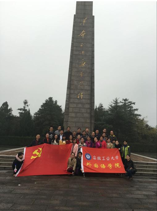 11月19日上午,伟德国际bevictor1946教职工党员冒着绵绵细雨来到马鞍山爱国主义教育基地—濮塘烈士陵园,瞻仰革命先烈的丰功伟绩,祭奠在抗日战争、解放战争中牺牲的烈士,接受革命传统教育。