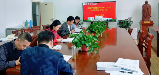 11月6日下午,伟德国际bevictor1946党委在学院会议室召开2019年第二十一次中心组学习扩大会,学院领导班子成员、党委委员,全体支部书记、科级干部参加了会议。院党委书记黄宇弦主持会议。