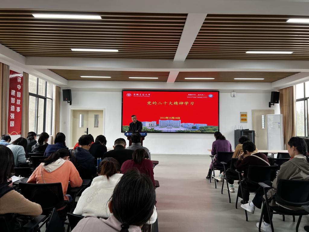 10月28日下午,伟德国际bevictor1946在教一401多功能报告厅深入学习了党的二十大精神,学院全体教职工参加了会议,院党委书记黄宇弦主持会议并主讲。