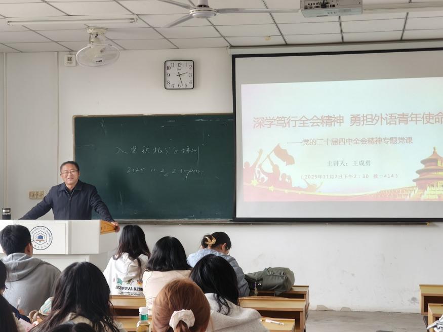11月2日下午,伟德国际bevictor1946在教一414教室举办“深学笃行全会精神,勇担外语青年使命”专题党课,由院党委书记王成勇主讲,学院分党校第五十期入党积极分子参加学习。