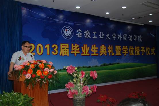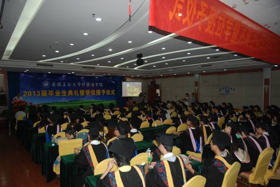 初夏六月,香荷坠清露,翠茵带余春。6月18日下午,我院2013届毕业生典礼暨学位授予仪式在金瑞商务酒店会议中心隆重举行。副校长葛芦生、校党委伟德国际部部长姚敏、大学生就业指导中心副主任丁忠利、院党委书记宋洪生、副院长洪流、副院长李克明及学院部分教师代表、家长代表与2013届106名毕业生齐聚一堂,共同见证了这一值得纪念的时刻。