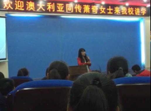 讲座一开场,GIGI女士迅速用流利的英语征服了现场师生。从自己学医的经历到转行做翻译,她讲述了当初自己是如何走上同声传译道路的;从翻译的分类到国外各个专业对英语翻译的要求,她告诉大家不仅要打好英语语言基础还要熟悉专业知识;从介绍各类出国语言考试到笔记法,她介绍了很多学习英语、学习翻译的方法。GIGI以广阔的视野介绍了在中国及西方英语国家翻译行业的工作情况和就业情况,介绍了中国学生出国深造、就业的途径。