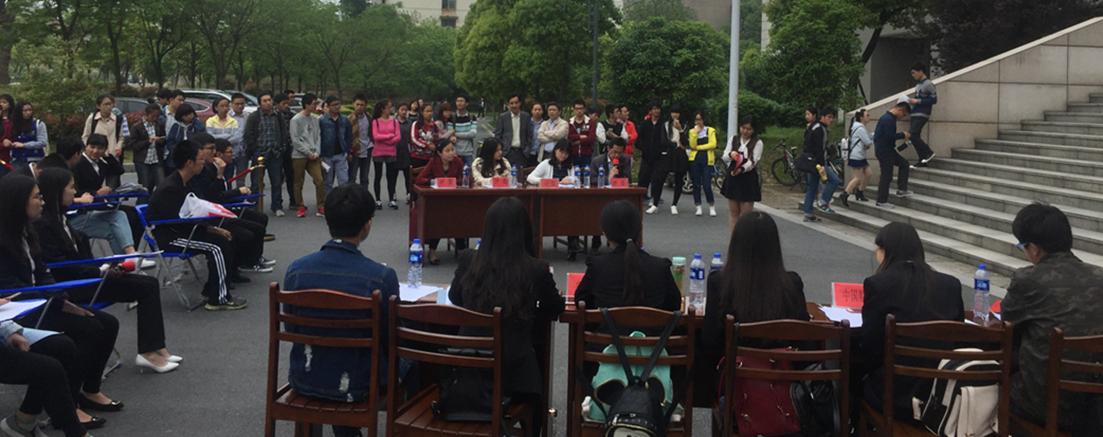 4月25日下午,由英语角协会主办,伟德国际bevictor1946与机械学院联合承办的大型求职英语模拟面试—首届英文版“职来职往”活动,活动在校图书馆北广场隆重举办。英语角协会特邀请伟德国际bevictor1946王平、汤红、张新元、范雯丽四位老师组成导师团现场指导,五位面试官则分别由外国语和机械学院口语能力较好的学生担任。伟德国际bevictor1946党委书记胡卫东,党委副书记、副院长黄宇弦全程参与并指导了此次活动。