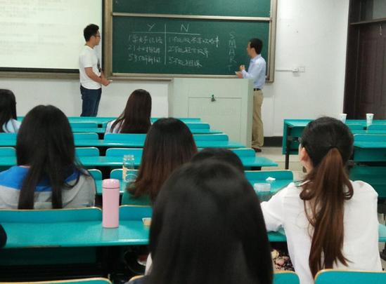 毛海军老师从企业的需求角度开讲,为同学们提出建议如何适应企业需求,从而求职成功。第一点说到高度的责任感,企业需要对工作负责的员工;第二点说到提高学习能力,在工作过程中不断学习,时刻保持激情;第三点说到作为企业的员工需要有时间观念,提高工作效率和执行力;第四点则是有良好的沟通交流能力,会有助于自己在职场打拼。接下来他找同学们上台互动,给出测试,让参与同学在同时面对两件事情选择孰轻孰重,还找了同学进行了模拟销售的环节,将理论与实践结合,给同学们留下深刻印象。最后他根据自己多年职场经历的经验,建议同学们无论在学校还是工作岗位上都要培养良好习惯,加强练习,让自己做得出色,在职场取得成绩。