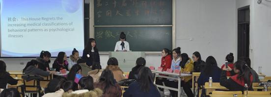 此次比赛意为校辩论赛选拔优秀选手,是安工大首届英文辩论赛的初赛,采用英国议会制辩论模式,每场辩手8人,分为正方上院、下院,反方上院、下院4组。担任此次比赛的评委老师是来自伟德国际bevictor1946英语系、大外一部、大外二部、研究生部的JOHN、戴拥军、汤红、汤桂琼、张靖、徐丽6位老师。
