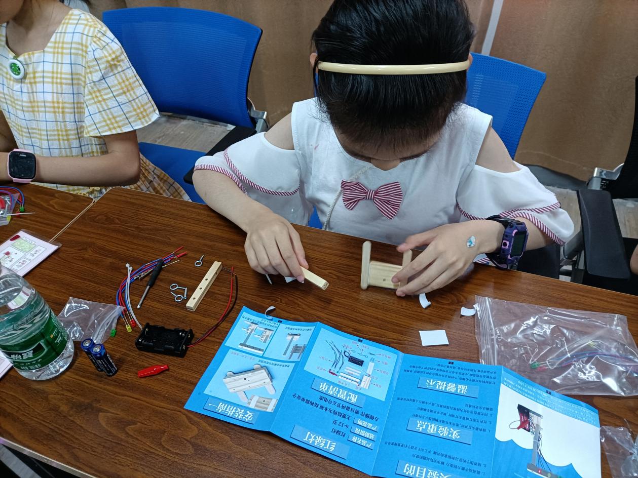 活动开始前,孩子们怀着愉悦的心情,迈着欢快的步伐进入课堂,盼望着活动的开始。首先,张玉用几个富有趣味性的问题带动了气氛,引得在场的孩子们纷纷举手,踊跃回答问题。他们对科学实验活动的好奇与期盼溢于言表。在做实验之前,张玉姐姐通过播放PPT的方式向同学们普及了简单的电学知识,在学习的过程中,未来的小科学家们也不断发言提问,展露出浓厚的兴趣。等到实际操作环节时,实验器材一经发放,小朋友们便根据说明书上步骤认认真真地开始了操作,最后组装成红绿灯,每一位小朋友的脸上都洋溢着灿烂的笑容,显露出自豪的神情。