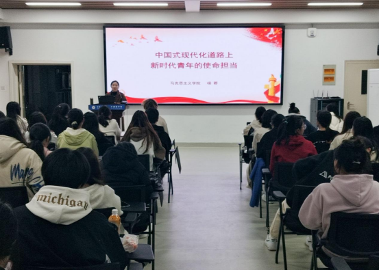 杨蓉以“中国式现代化道路上新时代青年的担当”为主题,提出了历史之问、时代之问、未来之问。通过这三个问题,她强调了新时代青年在中国式现代化演进中的使命担当,新进程中肩负的责任,以及在国家征程中如何承担使命。同时以中国历史各个时期青年榜样为例,展现了中国青年的勇往直前,强调青年要有文化自信和历史自信。最后,杨蓉希望青年学生在新时代中自信自强,承担新一代责任。