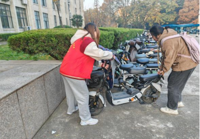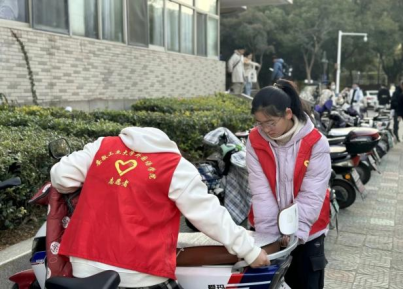 我院招募学生志愿者组建学院电动自行车管理督导队,在5号学生公寓楼、第一教学楼及周边等区域,开展文明停车、安全骑行、佩戴头盔等方面文明督导,引导学生在日常中养成良好交通习惯,有效维护交通安全秩序,共同推动文明校园建设。