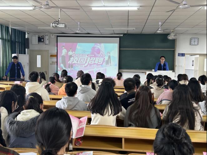 招聘会上,凯越集团义乌分公司人事经理郑浩强和可赛进出口业务经理陈佳荣向同学们介绍了公司的发展情况、行业前景以及岗位需求。他们通过视频宣传、PPT介绍和现场答疑的方式,向同学们展示了公司的规章制度、福利待遇、企业文化、产业结构、组织构架以及人力资源政策等方面的情况,并就公司外语类相关岗位进行了详细介绍。在互动环节,毕业生们就自己的专业方向及公司发展平台与机会等问题与招聘团队进行了交流互动,多名毕业生也凯越集团达成就业意向。