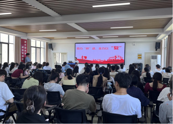 外D216班马春菲结合自身备考方法、学习心态调整等分享自己备考心路历程,与同学们共勉。卜齐春通过热门视频播放激励备考学生树立明确目标,以“三心”:信心、恒心、决心对留校考研学生提出要求,并叮嘱同学们:一是要做好规划,找准自身定位,合理选择报考专业和报考学校;二是要持之以恒,始终保持良好的学习状态,按照既定目标认真备考,不骄不躁,持续发力,不留遗憾;三是要劳逸结合,注意防暑降温,保持身心健康,以最好的状态备战考研。同时学院将成立暑假备考打卡监督群,督促同学们尽快进入状态。