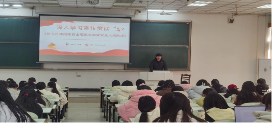 卜齐春向同学们详细介绍了国家安全和总体国家安全观的相关知识内涵,深刻阐释了国家安全总体形势,着重宣传了《中华人民共和国国家安全法》《中华人民共和国反间谍法》《中华人民共和国反恐怖主义法》等法律法规,告诫大家要自觉维护国家安全,树立总体国家安全观。他强调,青年大学生要知晓研判危害国家安全的行为异动、筑牢反奸反谍意识,为营造维护国家安全的良好社会氛围贡献青年力量。