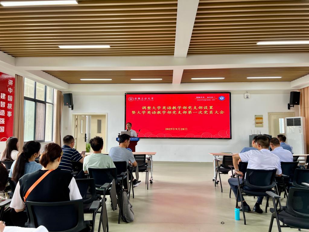 会上,王成勇宣读了《关于调整大学英语教学部党支部设置的通知》,党支部临时负责人周家春作表态发言。王成勇作总结讲话。