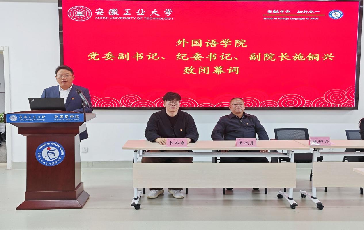 在圆满完成各项议程后,学院党委副书记施铜兴致闭幕词。他代表学院党委对大会的成功召开和新当选的团委委员、校级团代会、学研代会代表们表示热烈祝贺。他期望新一届团委要牢记嘱托,不辱使命,团结带领全院团员青年,以更加饱满的热情、更加昂扬的斗志、更加务实的作风,开拓创新,锐意进取,不断开创学院团学工作新局面。