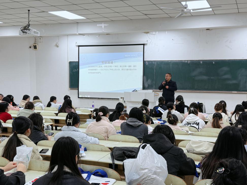 活动伊始,王成勇代表学院向正在全力备考的学子表达亲切慰问与坚定支持。他鼓励同学们在最后的冲刺阶段保持信心、稳住心态,以最好的状态迎接挑战。“学院始终是大家的坚强后盾,我们将全力做好保障工作,陪伴大家走好考研路上的每一步。”他勉励同学们坚定信念、沉着应考,在考场上发挥出色,实现自我突破。
