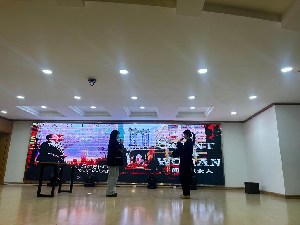 整场活动以诗歌朗诵与戏剧表演为主线,二十二个节目依次呈现,为师生带来一场融语言艺术与舞台表现于一体的跨文化盛宴。演出在《Friendship》与《A Song of Nature》的温暖诵读中拉开序幕,朗诵者以纯正发音与细腻表达,传递出文字背后的情感温度。戏剧表演环节精彩纷呈,从轻松诙谐的《生活大爆炸》到励志深刻的《肖申克的救赎》,学生们凭借熟练口语与生动演绎,将经典场景复刻于舞台。莎士比亚悲剧《李尔王》的深沉、《傲慢与偏见》的机智、《简·爱》的独立自尊,均在表演中焕发新生;而《哈利·波特:Midnight Duel》与《冰雪奇缘》的创新编排,则巧妙连接经典文学与当代文化,展现学子们的艺术想象力。戏剧表演在充满爱尔兰风情的《卢纳萨之舞》中圆满落幕,演员们以欢快节奏与灵动舞步,将全场气氛推向高潮。